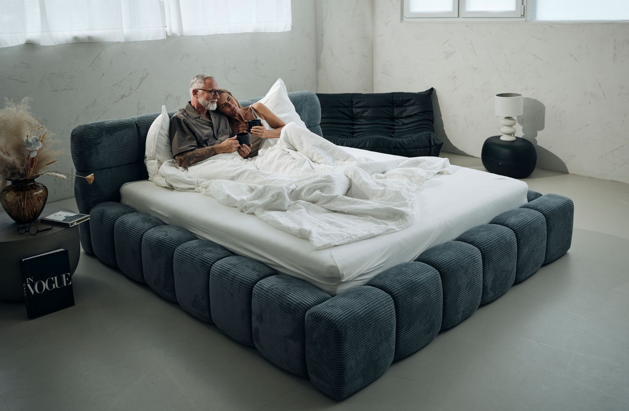 Put together your dream bed exactly as you wish – with or without mattress. In the configurator, you can individually choose the look and fabric, the height and design of the headboard, the slatted frame, as well as the base, and perfectly tailor your upholstered bed to your style and comfort.