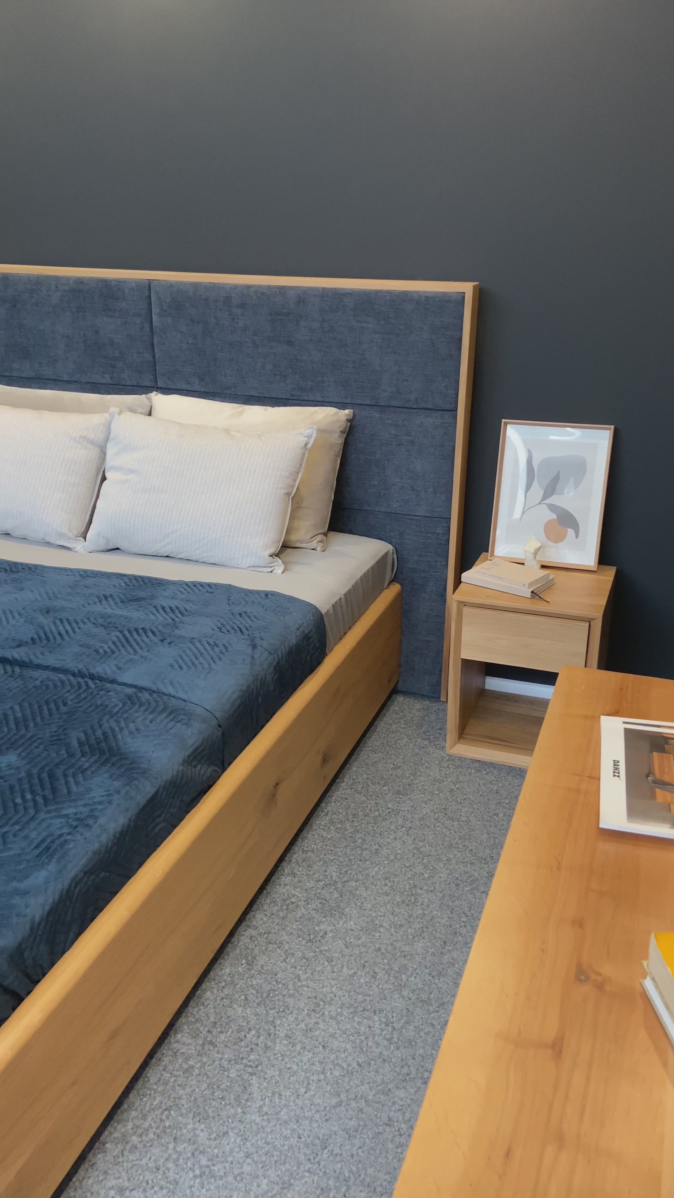 Designer Holzbett Valent aus massiver Eiche mit Stauraum